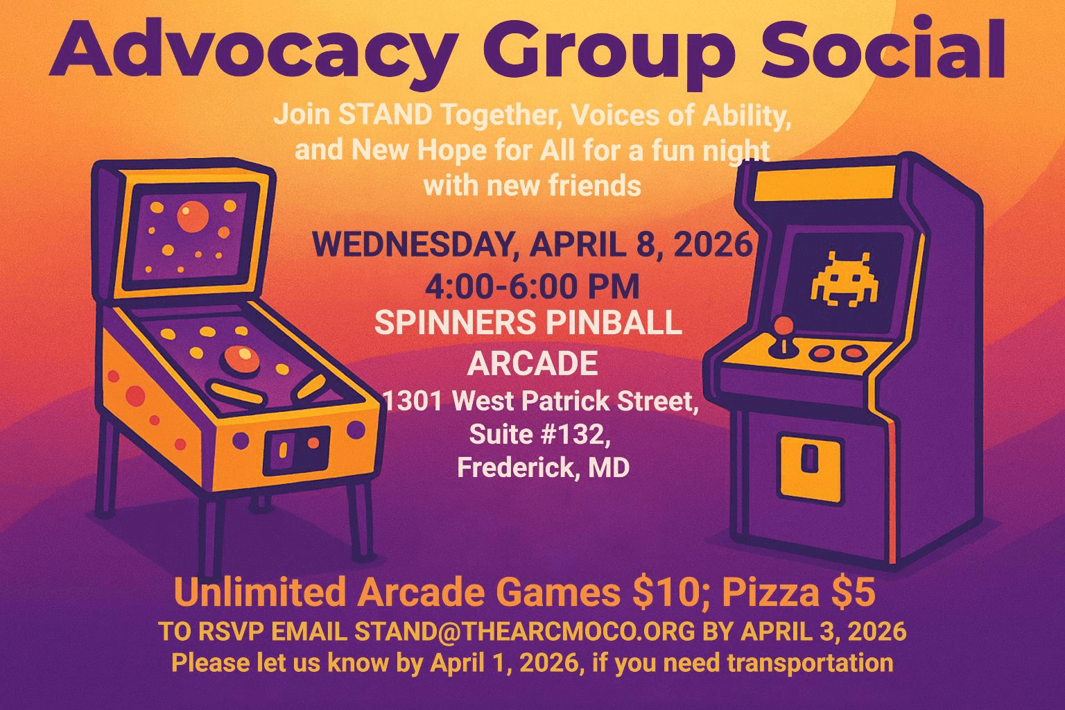 We are meeting with other advocacy groups in Maryland! Please join STAND Together, Voices of Ability, and New Hope for All for a fun social get together. Please email STAND Together if you are interested in attending and need transportation by this Friday, April 3, 2026.